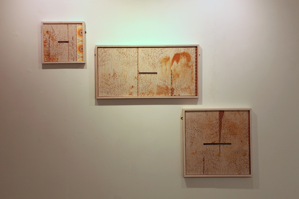 Triptych takes excepts from the account by Noel O’Dowd of his mother’s words to him as he came home on the evening of January 4th 1976to find his uncle and brothers dead, his father grievously wounded, as the result of an attack on the O’Dowd home by loyalist paramilitaries. Martin Doyle, of the Irish Times, who had been a neighbour of theirs growing up told the story and his account of the now dismal state of their once immaculately kept home affected me greatly. The inset lead plaques read ‘Is that you, Noel’ ‘Go and get your uncle Frank’, ‘Your father and them all has been shot dead’.