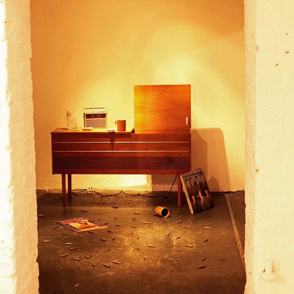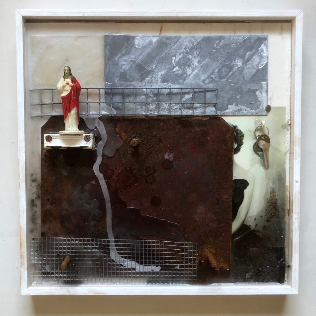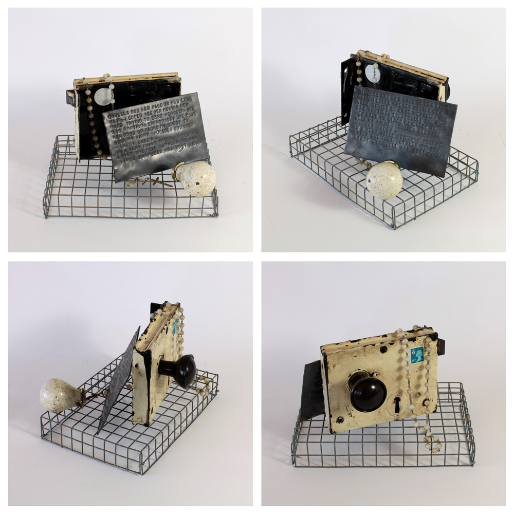 While I was starting out on this body of work I was also working on a house renovation, uncovering newspapers under old carpets, decades old wallpaper hidden under new walls like the ghosts of former residents, toys lost down the backs of cupboards. Towards the bottom of the page are some of the initial works I made in exploration of the themes I was interested in but which didn’t make sense to include in the exhibition as it was realised. As I was starting the exploratory work on this body of work I was simultaneously working on the lead bells commemorating the Ballymurphy Massacre and Bloody Sunday and I started to think in more depth about how the materials I chose could work as a vehicle for exploring memories and teasing out meaning, implying a narrative that I didn’t have to approach in a reductive fashion. The resulting works include both installed and wall mounted pieces, often titled with reference to songs. This was in part to create a secondary way into the work but also because it chimes with the mordant, gallows humour so prevalent in the border counties.