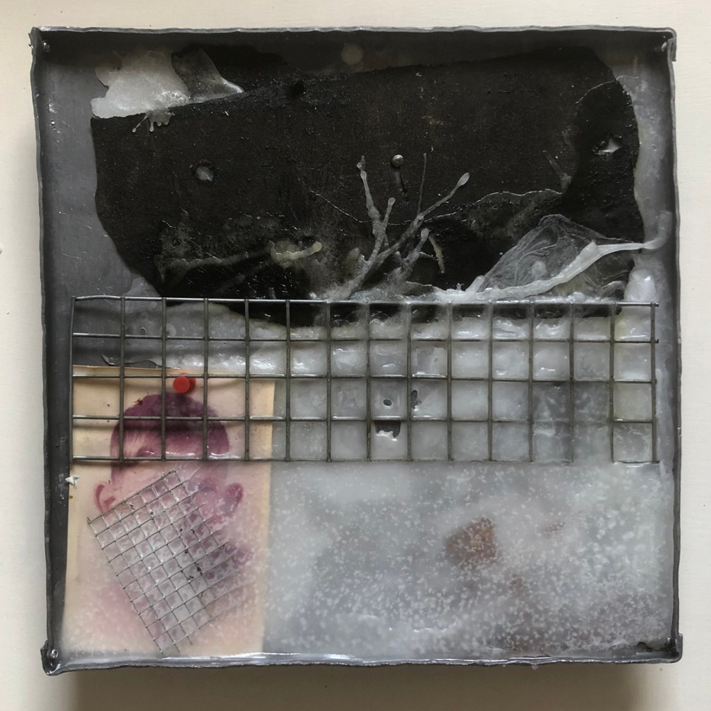 In these new mixed media works I’m trying to build a language with which I can look at my own past and that past that I share with my near contemporaries. The lead and wax are carried across from the Silenced Bells and I’ve used the metal grid as a mnemonic for home or a sense of place in Green Green Grass of Home but by combining other collaged elements I’m hoping I can build an intuitive sense of narrative into these new works. They are meant to be read literally but hopefully the resonances are there for others to tune into.